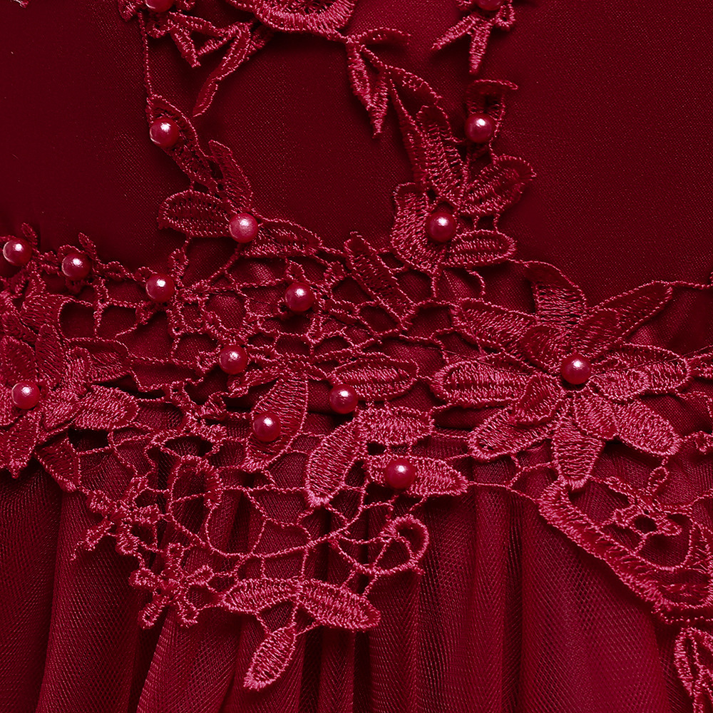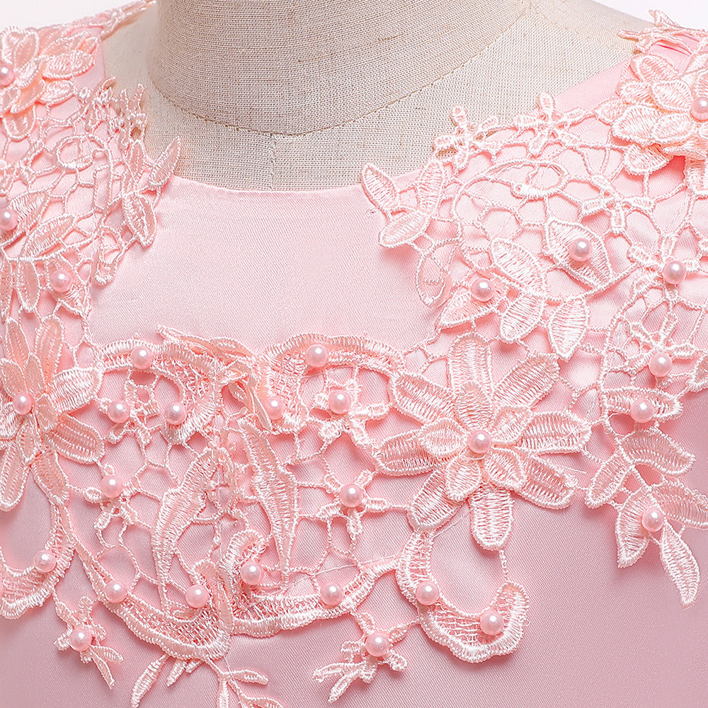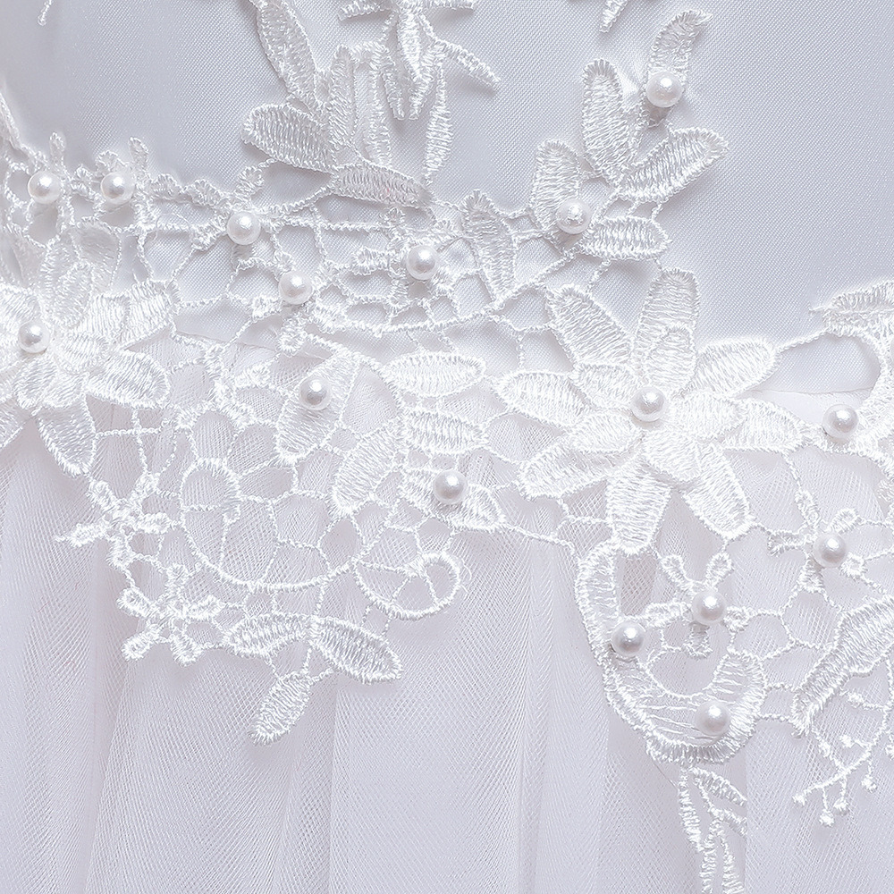 Children Long Bubble Skirt Evening Dress Girls Lace Flowers Bead Tulle Ball Gown Mid-waist Zipper Kids Tutu Dress Performance Wedding