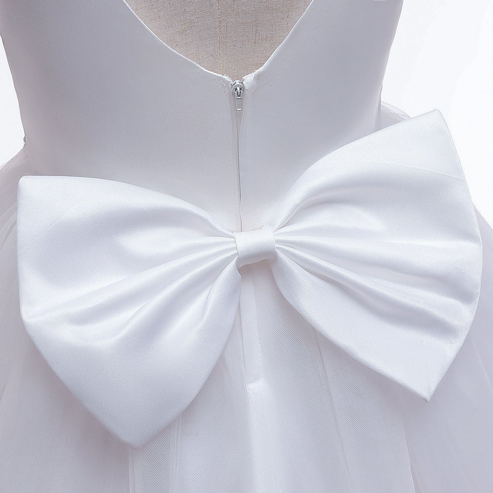 Description: This enchanting dress features a beautifully designed bubble skirt that adds a touch of whimsy, while the delicate lace flowers and bow detail enhance its elegant appeal. The zip closure at the back ensures a snug fit, making it perfect for various formal occasions. With its luxurious cotton blend fabric and classic design, this dress will make your child the center of attention at any event.