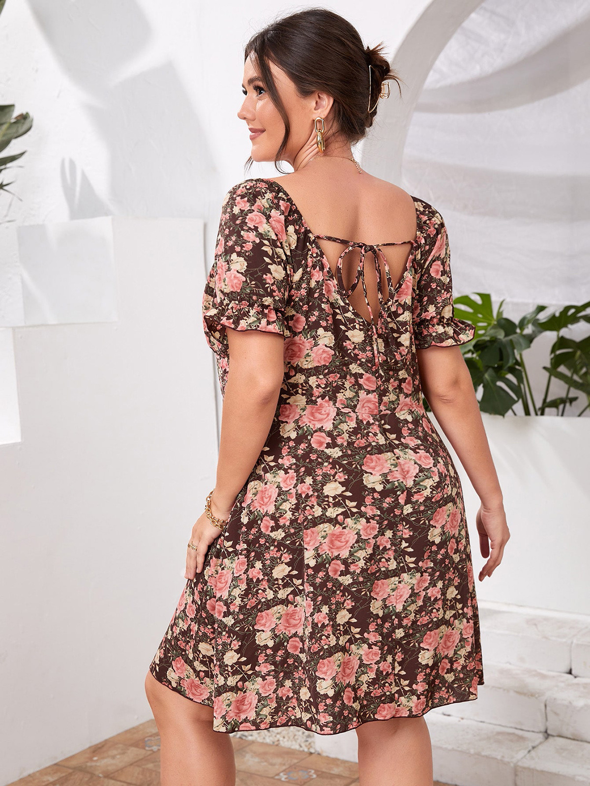 Product Description: Summer Plus Size Mini Dress - Vintage Floral Slim Fit