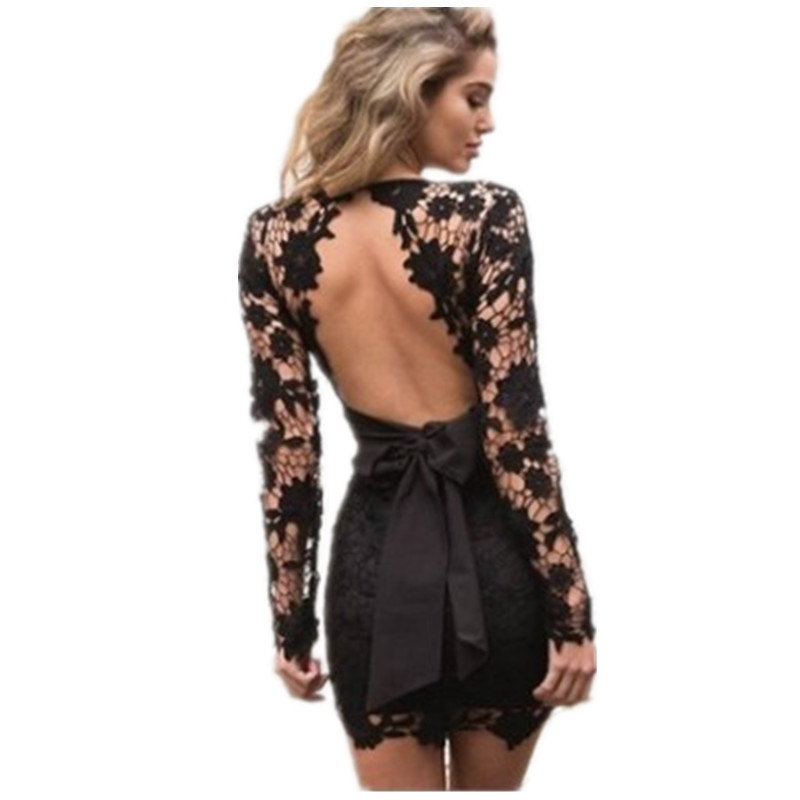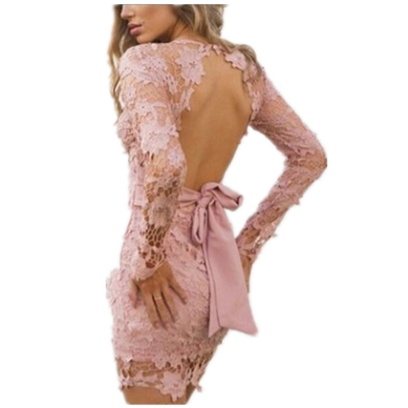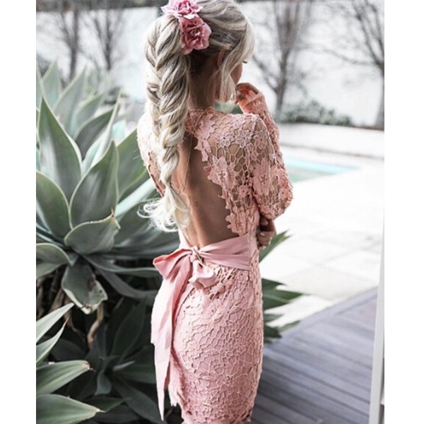 Women Fashion Hollow Lace Backless Dress